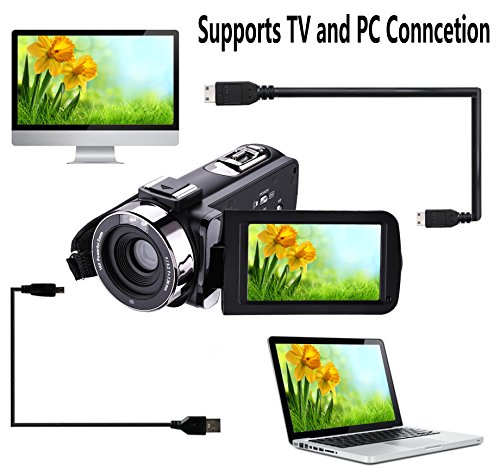 - - de Alta Calidad y Tecnología Avanzada: girar la pantalla TFT LCD de 3.0 ", que permite obtener el tamaño de la imagen correcta, 1920 x 1080 pixels / 15FPS (FHD), 3 pulgadas de pantalla táctil (el apoyo de 270 grados de rotación), zoom digital de apoyo 16 veces, salida HDMI y tarjeta SD / sdhc (4 GB hasta 32 GB) y un trípode (nota, trípode y la tarjeta SD no incluidos) y salida mini USB 2.0.También apoyo inglés / chino/ francés / español / italiano / alemán / ruso el idioma del menú.